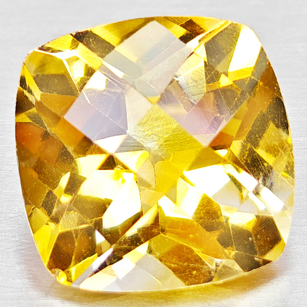 Natural Yellow Citrine 3.97 Ct. Cushion Checkerboard Cut 10.2 x 10.1 Mm Gemstone
