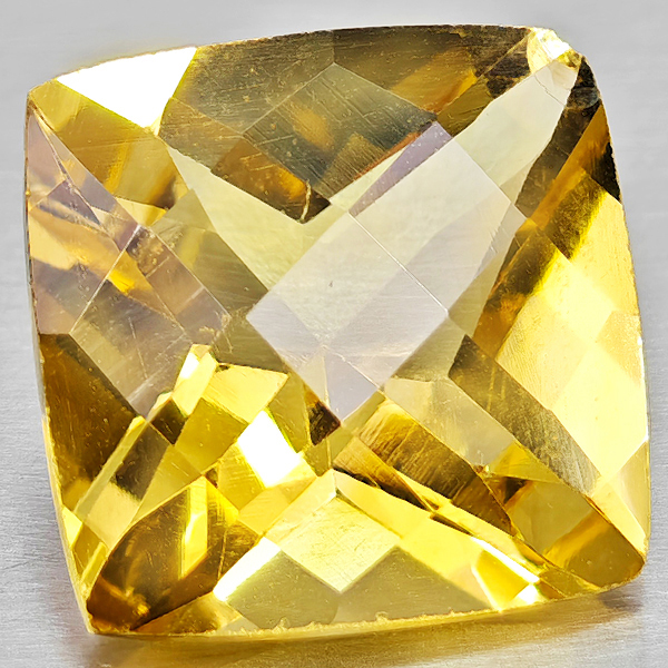 Natural Yellow Citrine 3.92 Ct. Cushion Checkerboard Cut 10.1 x 10.1 Mm Gemstone