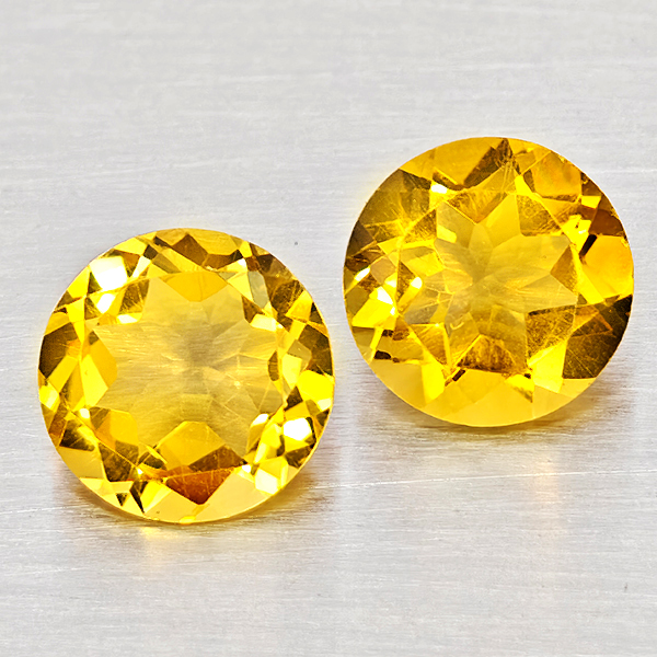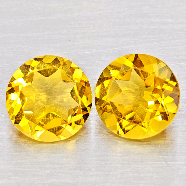 Natural Yellow Citrine 2.23 Ct. 2 Pcs Round Shape 7.2 Mm Gemstones From Brazil