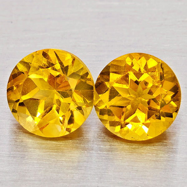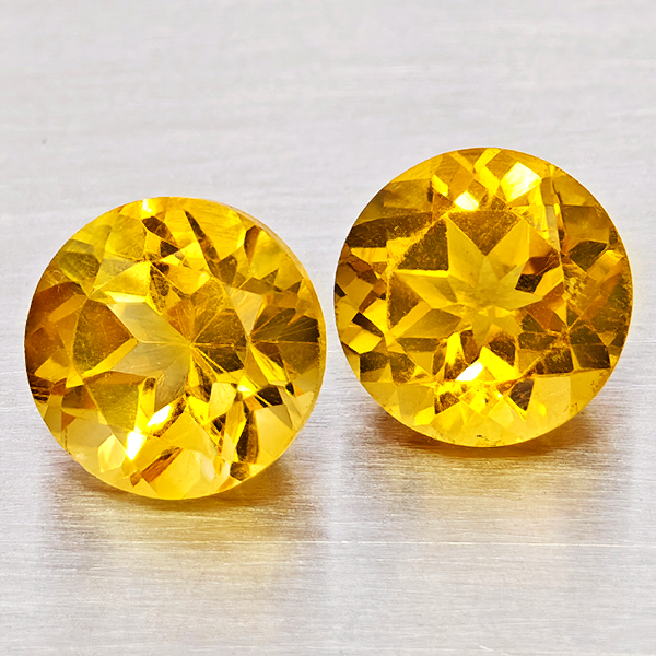 Natural Yellow Citrine 2.87 Ct. 2 Pcs Round Shape 7 Mm Gemstones From Brazil