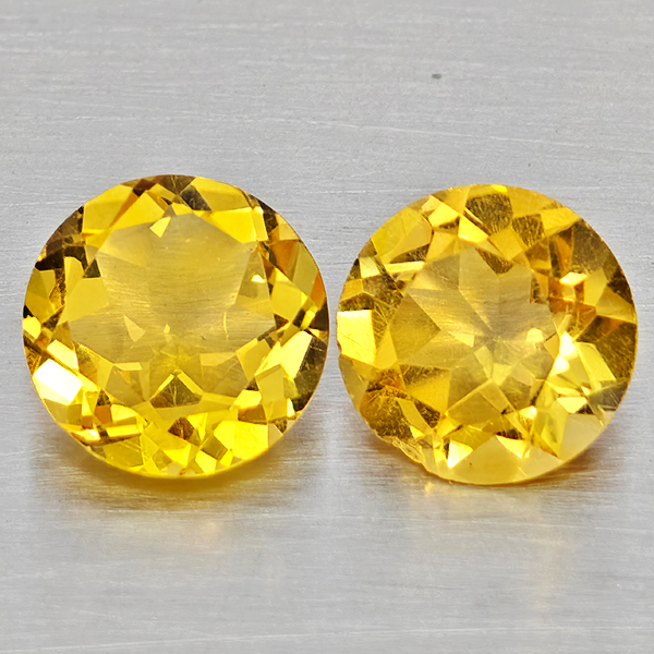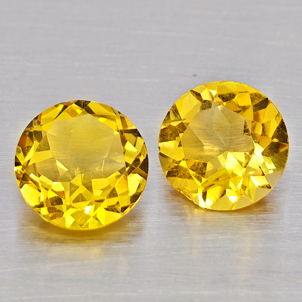 Natural Yellow Citrine 2.15 Ct. 2 Pcs Round Shape 7.2 Mm Gemstones From Brazil