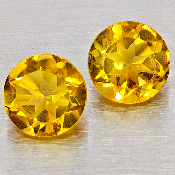 Natural Yellow Citrine 2.53 Ct. 2 Pcs Round Shape 7 Mm Gemstones From Brazil