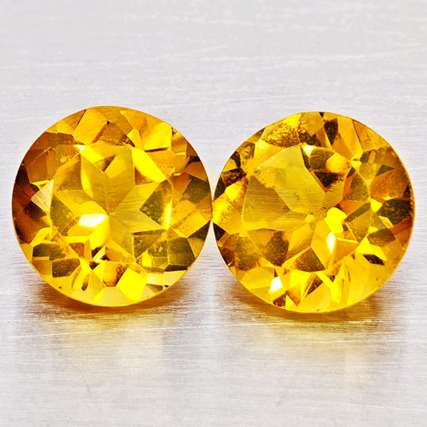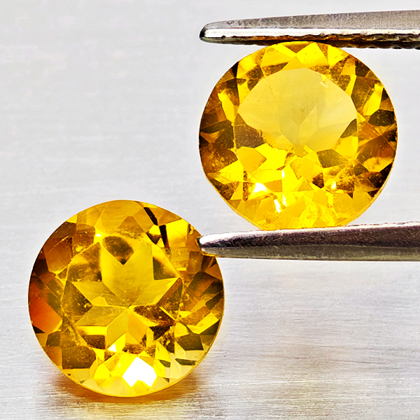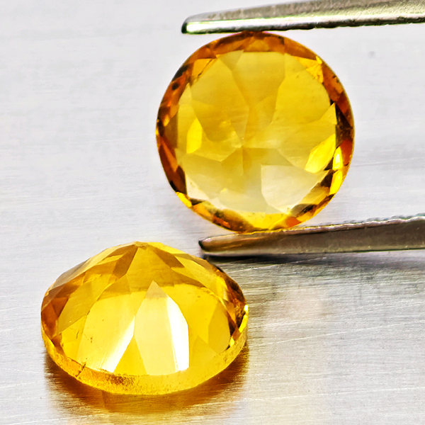 Natural Yellow Citrine 2.44 Ct. 2 Pcs Round Shape 7.2 Mm Gemstones From Brazil