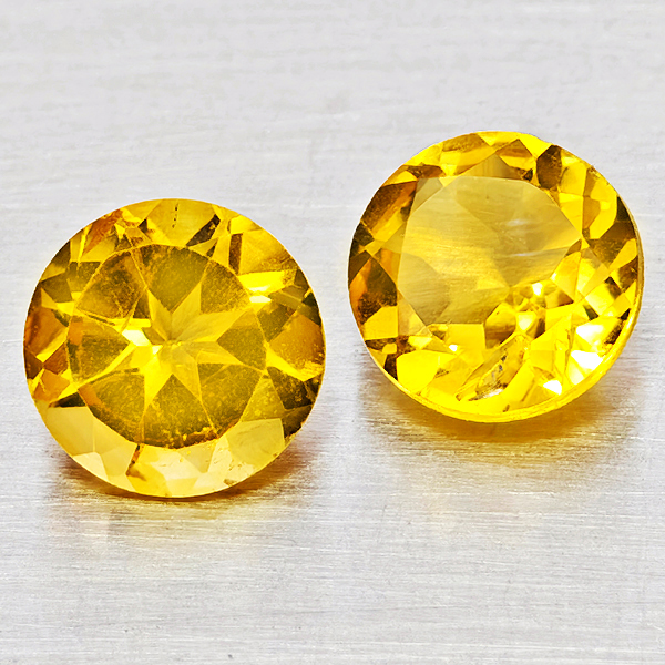 Natural Yellow Citrine 2.28 Ct. 2 Pcs Round Shape 7.1 Mm Gemstones From Brazil