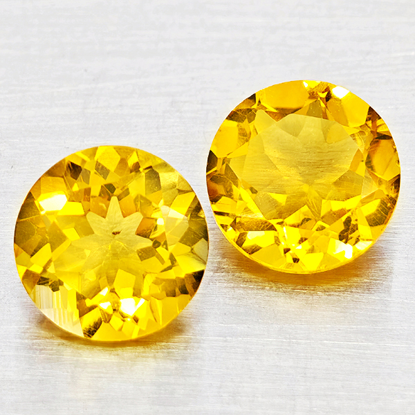 Natural Yellow Citrine 2.33 Ct. 2 Pcs Round Shape 7 Mm Gemstones From Brazil