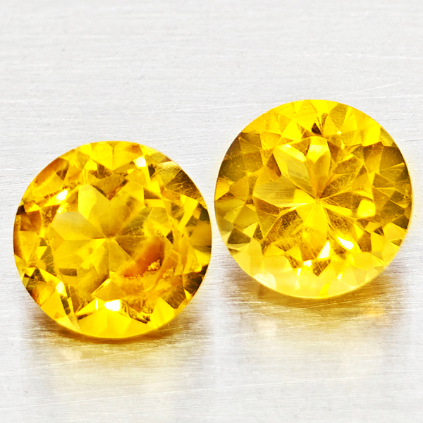 Natural Yellow Citrine 2.16 Ct. 2 Pcs Round Shape 7 Mm Gemstones From Brazil