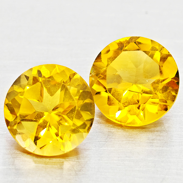 Natural Yellow Citrine 2.18 Ct. 2 Pcs Round Shape 7 Mm Gemstones From Brazil
