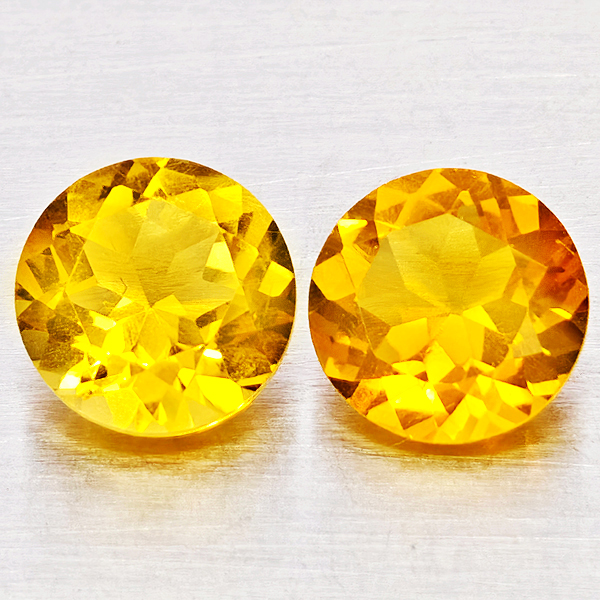 Natural Yellow Citrine 2.33 Ct. 2 Pcs Round Shape 7.1 Mm Gemstones From Brazil
