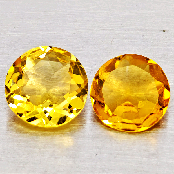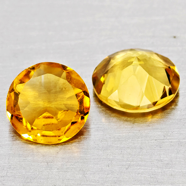 Natural Yellow Citrine 2.46 Ct. 2 Pcs Round Shape 7.1 Mm Gemstones From Brazil