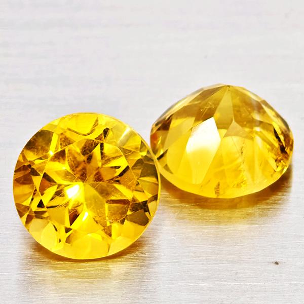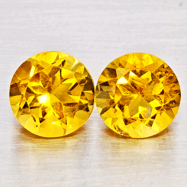 Natural Yellow Citrine 2.61 Ct. 2 Pcs Round Shape 7.1 Mm Gemstones From Brazil