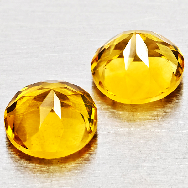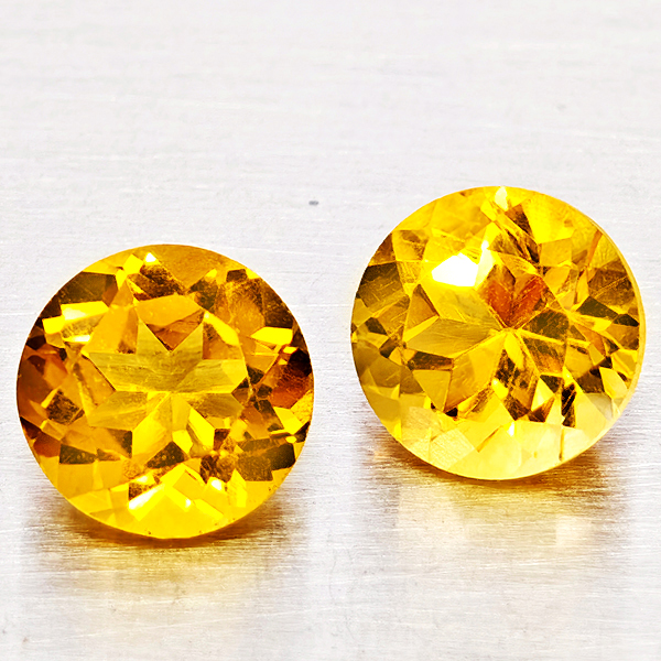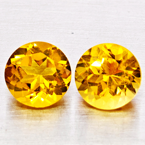Natural Yellow Citrine 1.98 Ct. 2 Pcs Round Shape 7.1 Mm Gemstones From Brazil