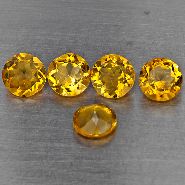 Natural Yellow Citrine 6.03 Ct. 5 Pcs Round Shape 7.2 Mm Gemstone from Brazil