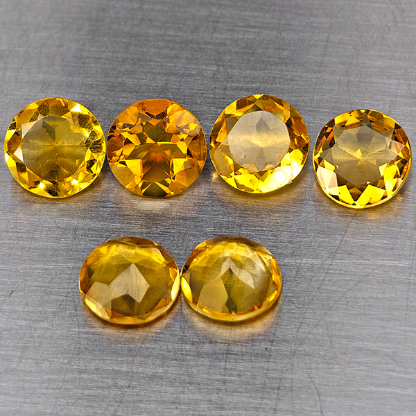 Natural Yellow Citrine 5.32 Ct. 5 Pcs Round Shape 7.4 Mm Gemstone from Brazil