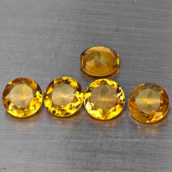 Natural Yellow Citrine 5.24 Ct. 5 Pcs Round Shape 7.2 Mm Gemstone from Brazil