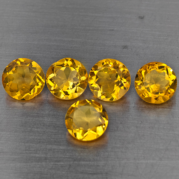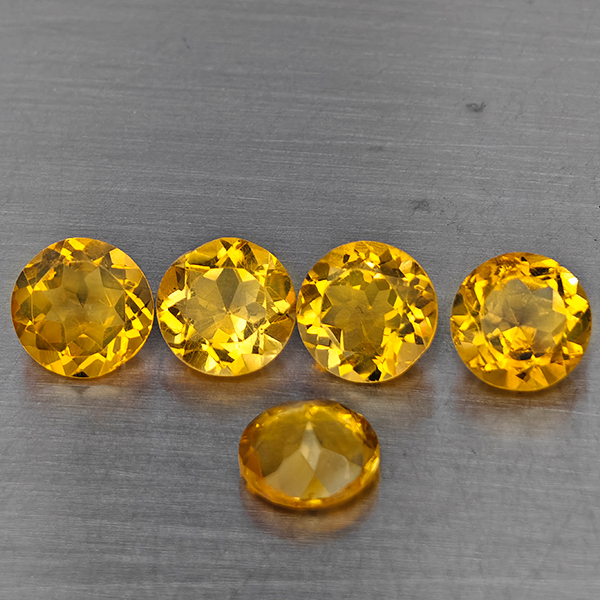 Natural Yellow Citrine 5.29 Ct. 5 Pcs Round Shape 7.2 Mm Gemstone from Brazil