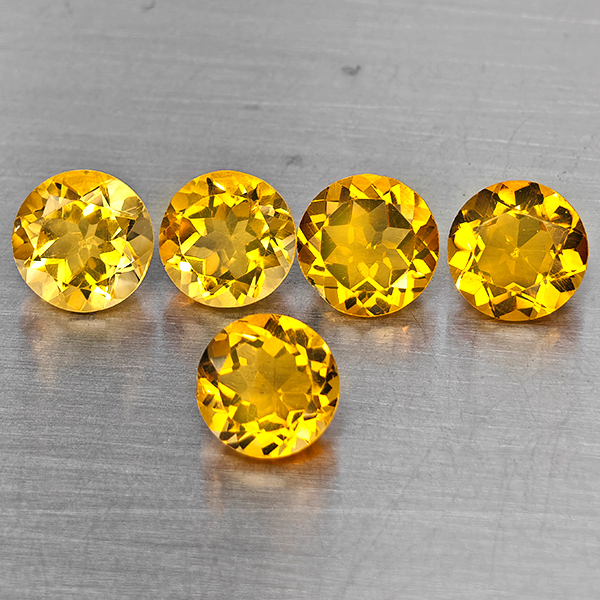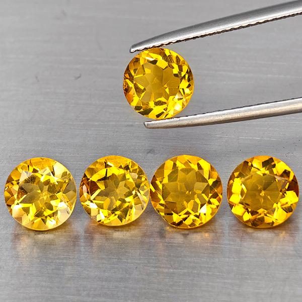 Natural Yellow Citrine 5.31 Ct. 5 Pcs Round Shape 7.2 Mm Gemstone from Brazil