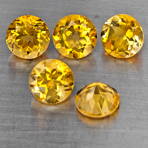 Natural Yellow Citrine 5.72 Ct. 5 Pcs Round Shape 7.3 Mm Gemstone from Brazil
