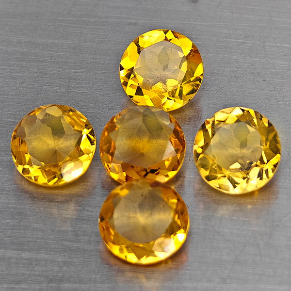 Natural Yellow Citrine 5.55 Ct. 5 Pcs Round Shape 7.2 Mm Gemstone from Brazil