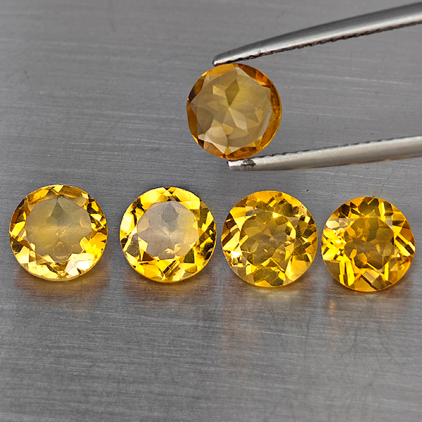 Natural Yellow Citrine 4.88 Ct. 5 Pcs Round Shape 7 Mm Gemstone From Brazil