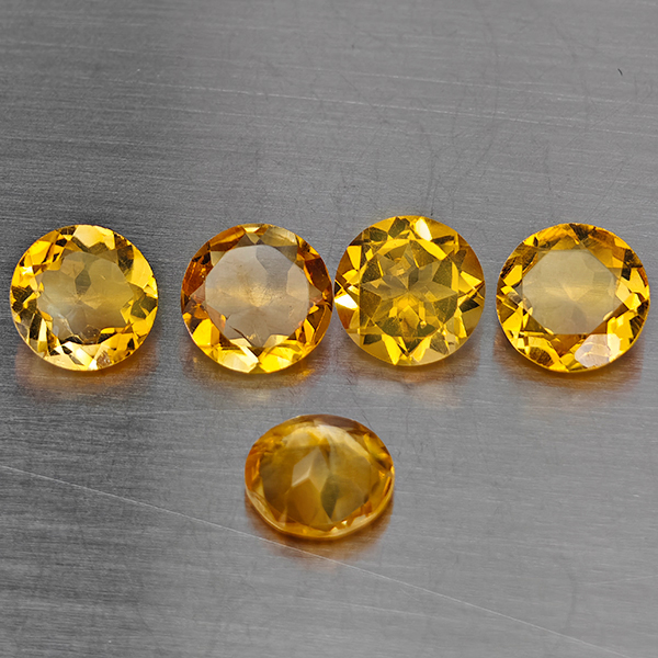 Natural Yellow Citrine 5.30 Ct. 5 Pcs Round Shape 7.2 Mm Gemstone From Brazil