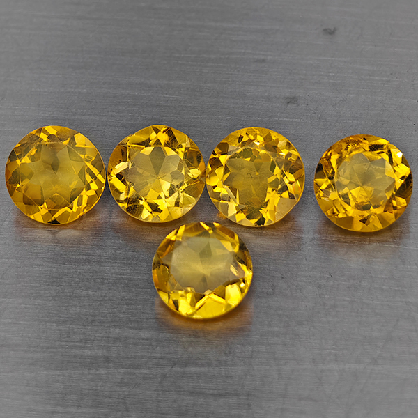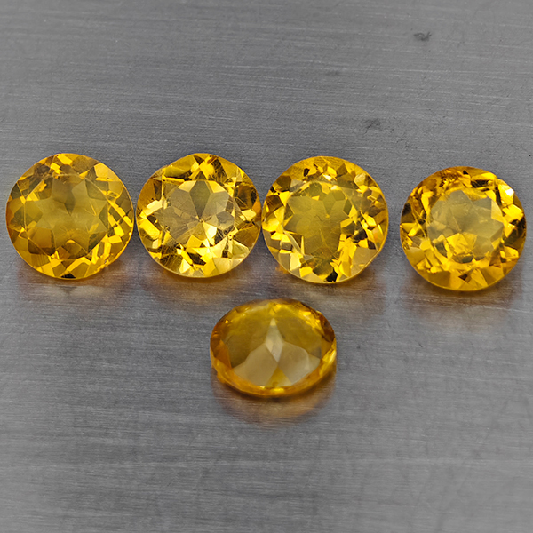 Natural Yellow Citrine 4.81 Ct. 5 Pcs Round Shape 7.4 Mm Gemstone From Brazil