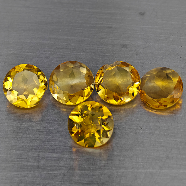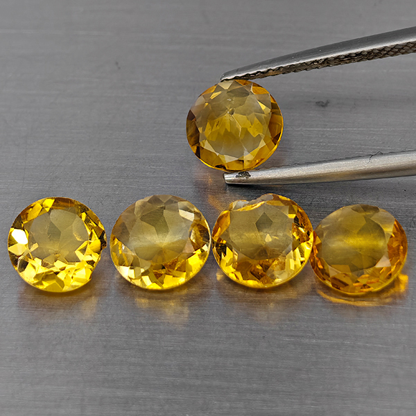 Natural Yellow Citrine 5.93 Ct. 5 Pcs Round Shape 7.4 Mm Gemstone From Brazil