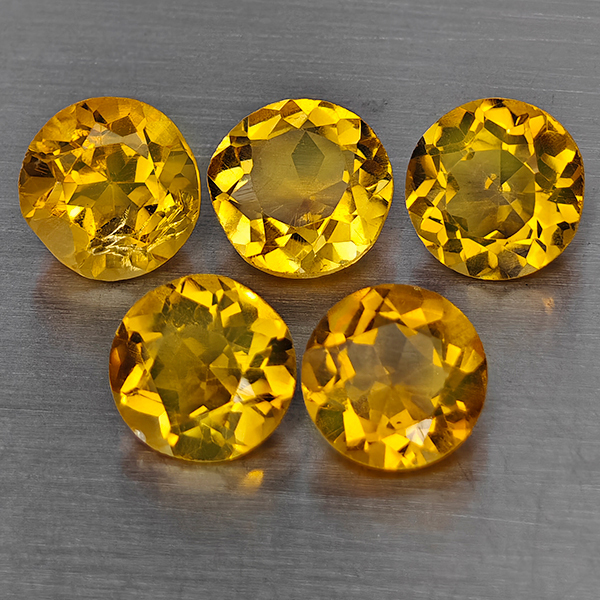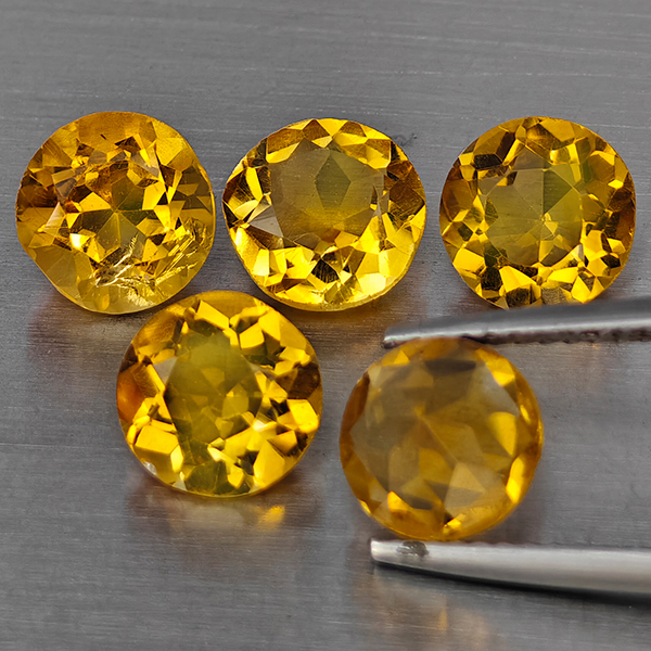 Natural Yellow Citrine 5.44 Ct. 5 Pcs Round Shape 7.2 Mm Gemstone From Brazil