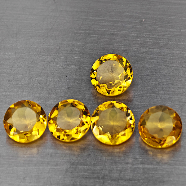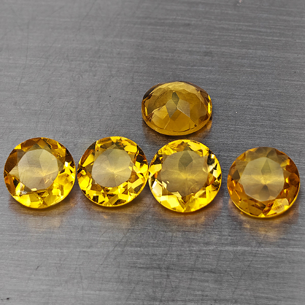 Natural Yellow Citrine 6.10 Ct. 5 Pcs Round Shape 7.5 Mm Gemstone From Brazil