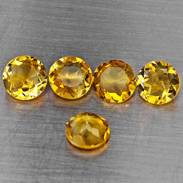 Natural Yellow Citrine 5.99 Ct. 5 Pcs Round Shape 7.2 Mm Gemstone From Brazil