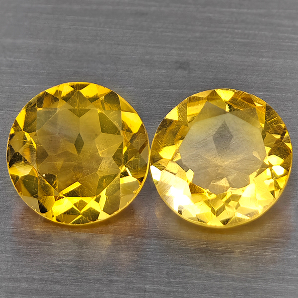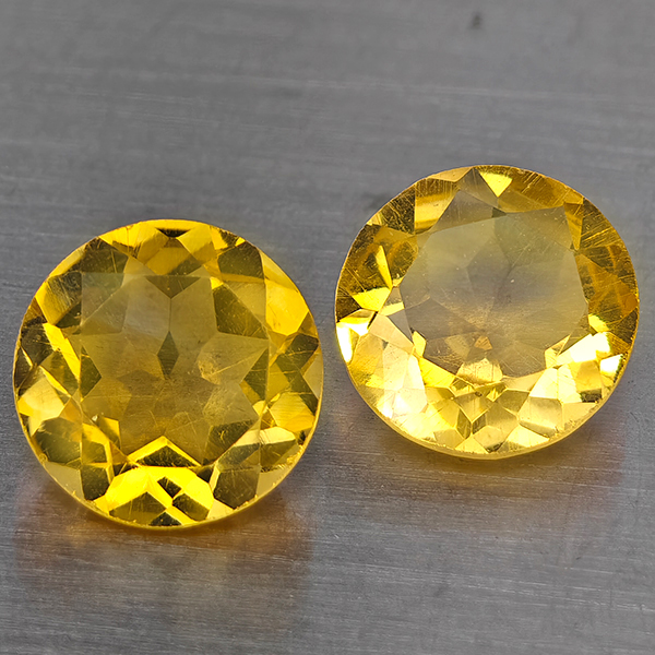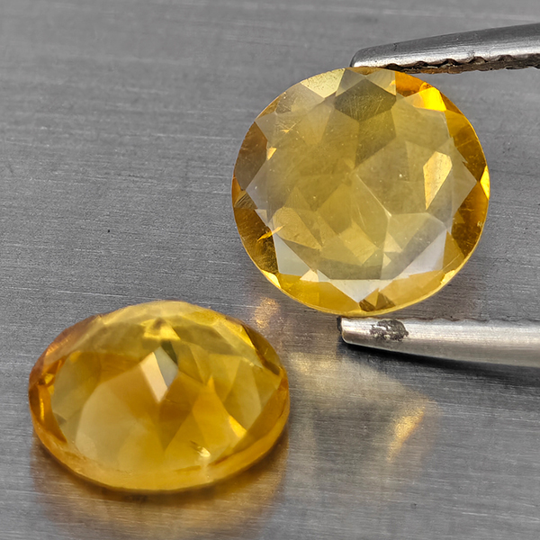 Natural Yellow Citrine 2.39 Ct. 2 Pcs Round Shape 7.6 Mm Gemstone from Brazil
