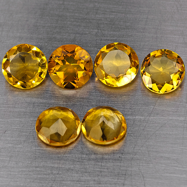 Natural Yellow Citrine 5.27 Ct. 6 Pcs Round Shape 6.8 Mm Gemstone from Brazil