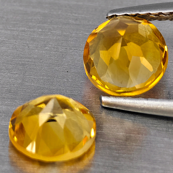 Natural Yellow Citrine 1.84 Ct. 2 Pcs Round Shape 6.5 Mm Gemstone from Brazil