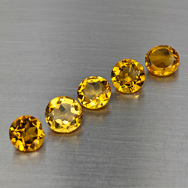 Natural Yellow Citrine 5.95 Ct. 5 Pcs Round Shape 7.3 Mm Gemstone from Brazil