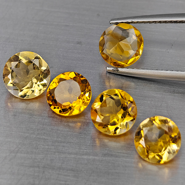 Natural Yellow Citrine 5.66 Ct. 5 Pcs Round Shape 7.1 Mm Gemstone from Brazil