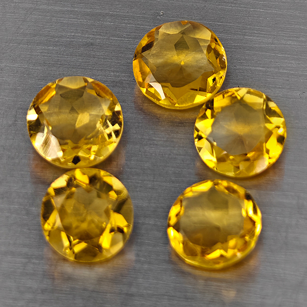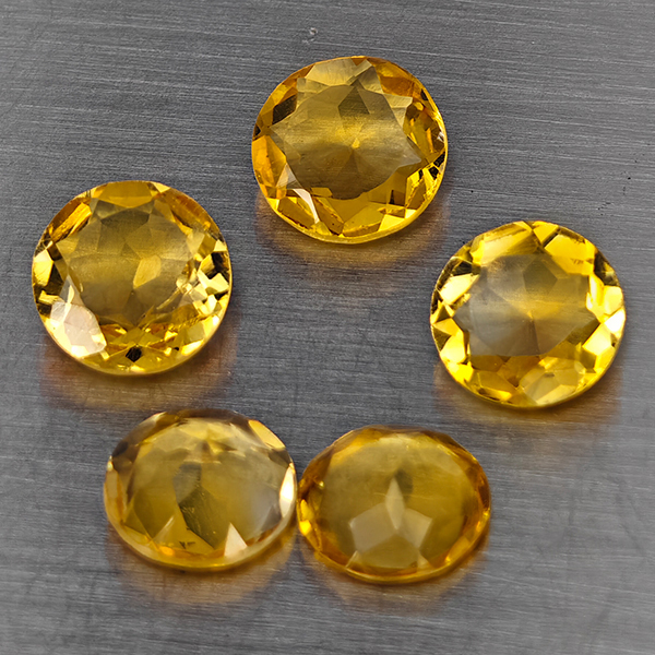 Natural Yellow Citrine 4.73 Ct. 5 Pcs Round Shape 7.3 Mm Gemstone from Brazil