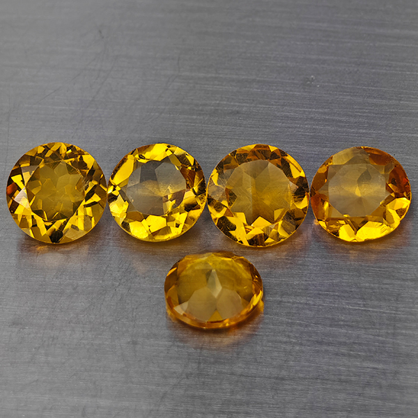 Natural Yellow Citrine 5.06 Ct. 5 Pcs Round Shape 7.2 Mm Gemstone from Brazil