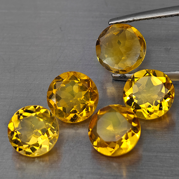 Natural Yellow Citrine 5.86 Ct. 5 Pcs Round Shape 7.2 Mm Gemstone from Brazil