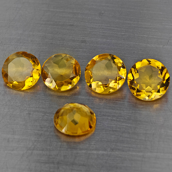 Natural Yellow Citrine 4.59 Ct. 5 Pcs Round Shape 7.3 Mm Gemstone from Brazil