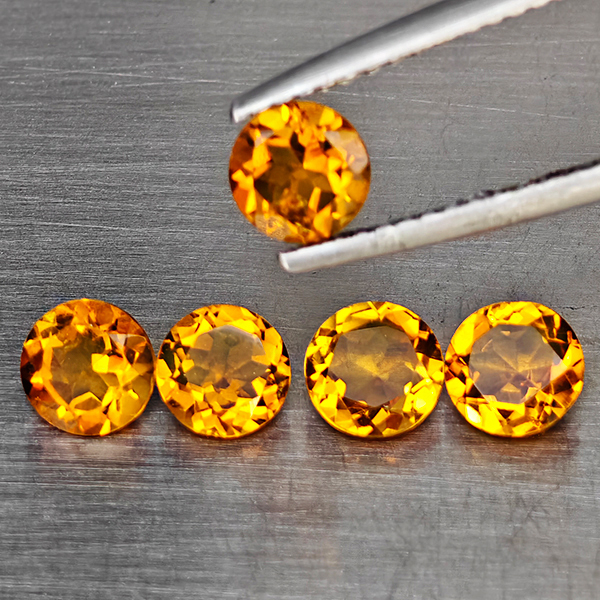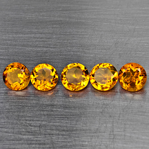 Natural Yellow Citrine 1.94 Ct. 5 Pcs Round Shape 5.1 Mm Gemstone from Brazil