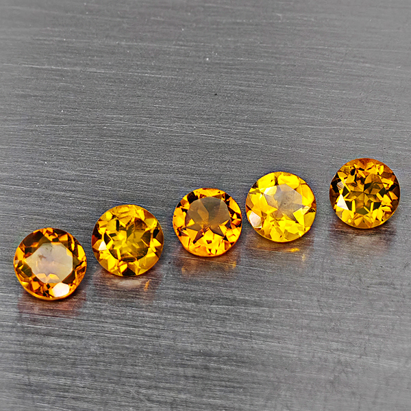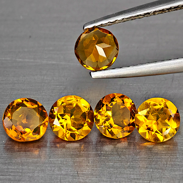 Natural Yellow Citrine 1.98 Ct. 5 Pcs Round Shape 5.1 Mm Gemstones From Brazil