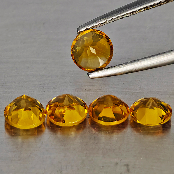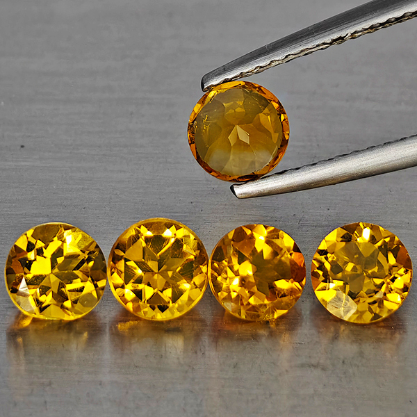 Natural Yellow Citrine 2.24 Ct. 5 Pcs Round Shape 5.1 Mm Gemstones From Brazil
