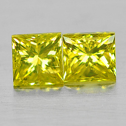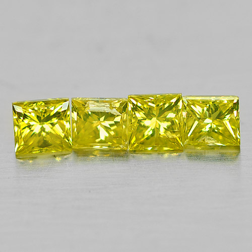 Yellow Loose Diamond 0.31 Ct. 4 Pcs. Square Princess Cut 2.4 x 2.4 Mm. Natural