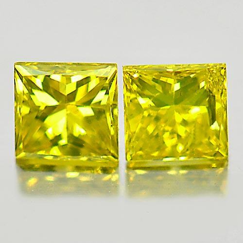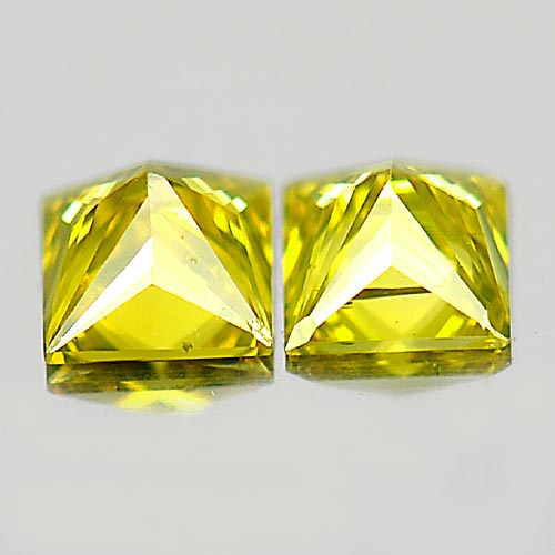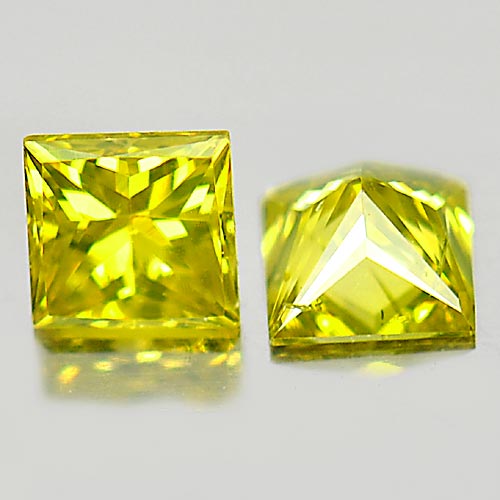 0.22 Ct. 2 Pcs. Square Princess Cut Natural Yellow Loose Diamond Size 2.6 Mm.