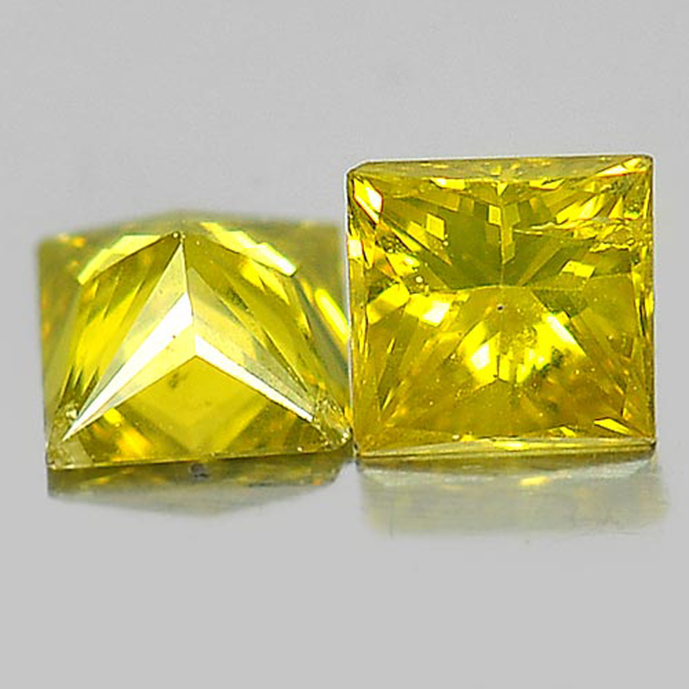 Square Princess Cut 0.28 Ct. 2 Pcs. Good Natural Yellow Loose Diamond