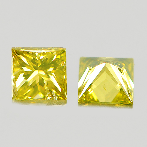 Square Princess Cut 0.20 Ct. 2 Pcs. Good Natural Yellow Loose Diamond