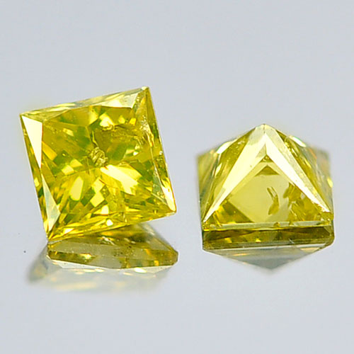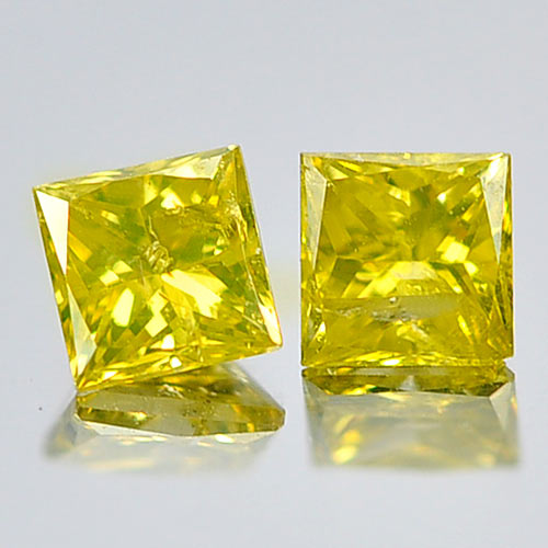0.22 Ct. 2 Pcs. Square Princess Cut Natural Yellow Loose Diamond Size 2.6 mm.