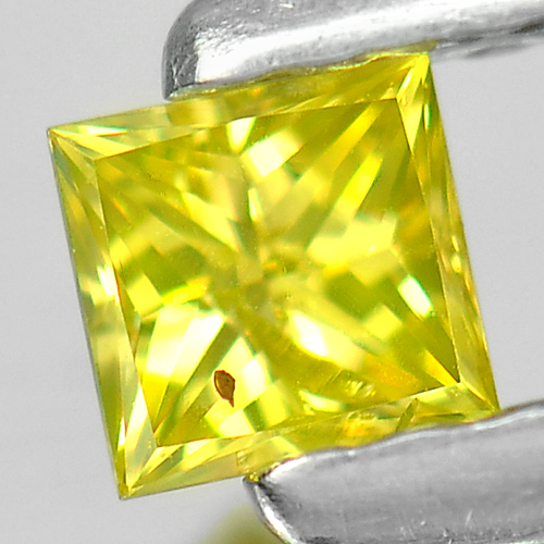 Loose Diamond Yellow 0.16 Ct. Square Princess Cut 3 x 3 Mm. Natural Belgium