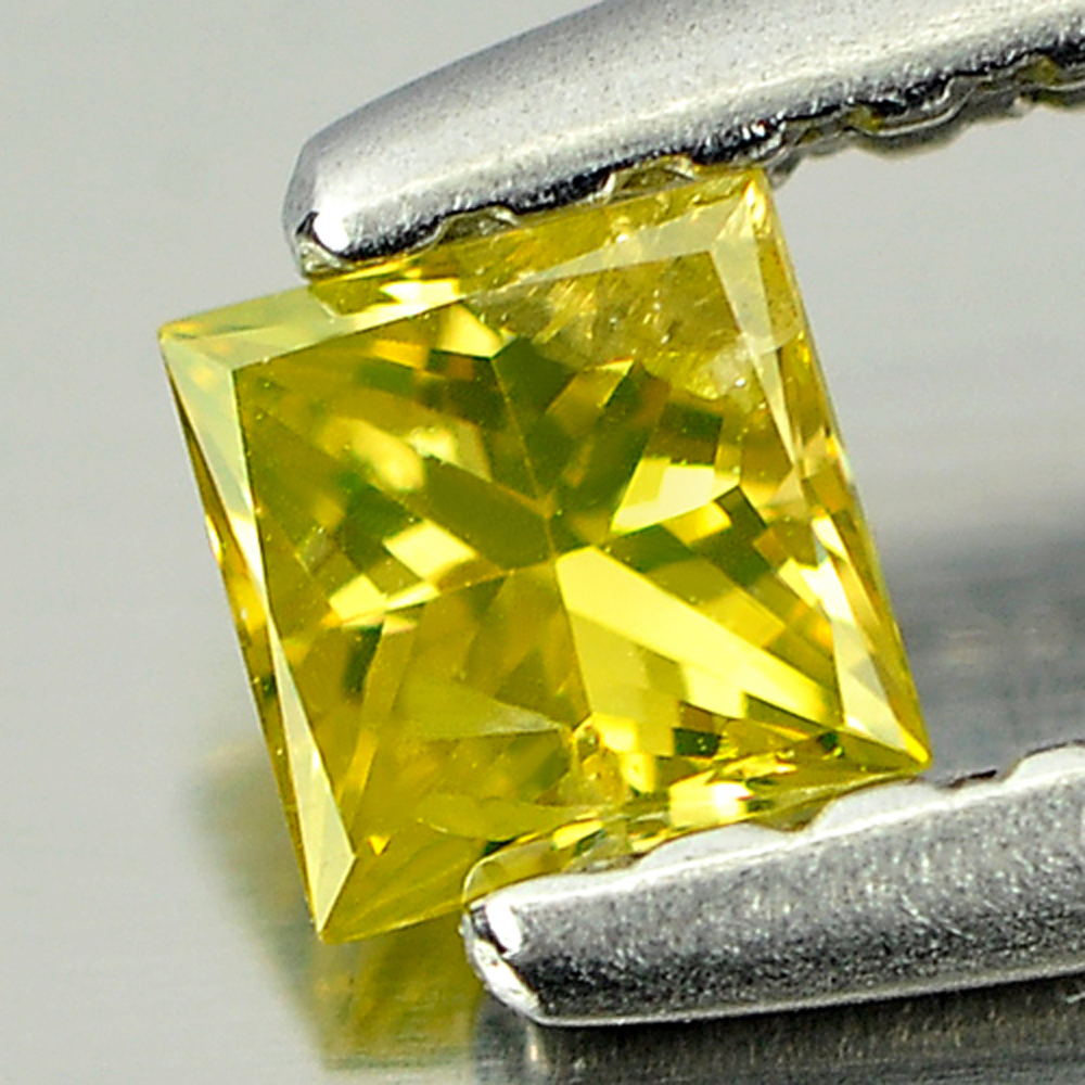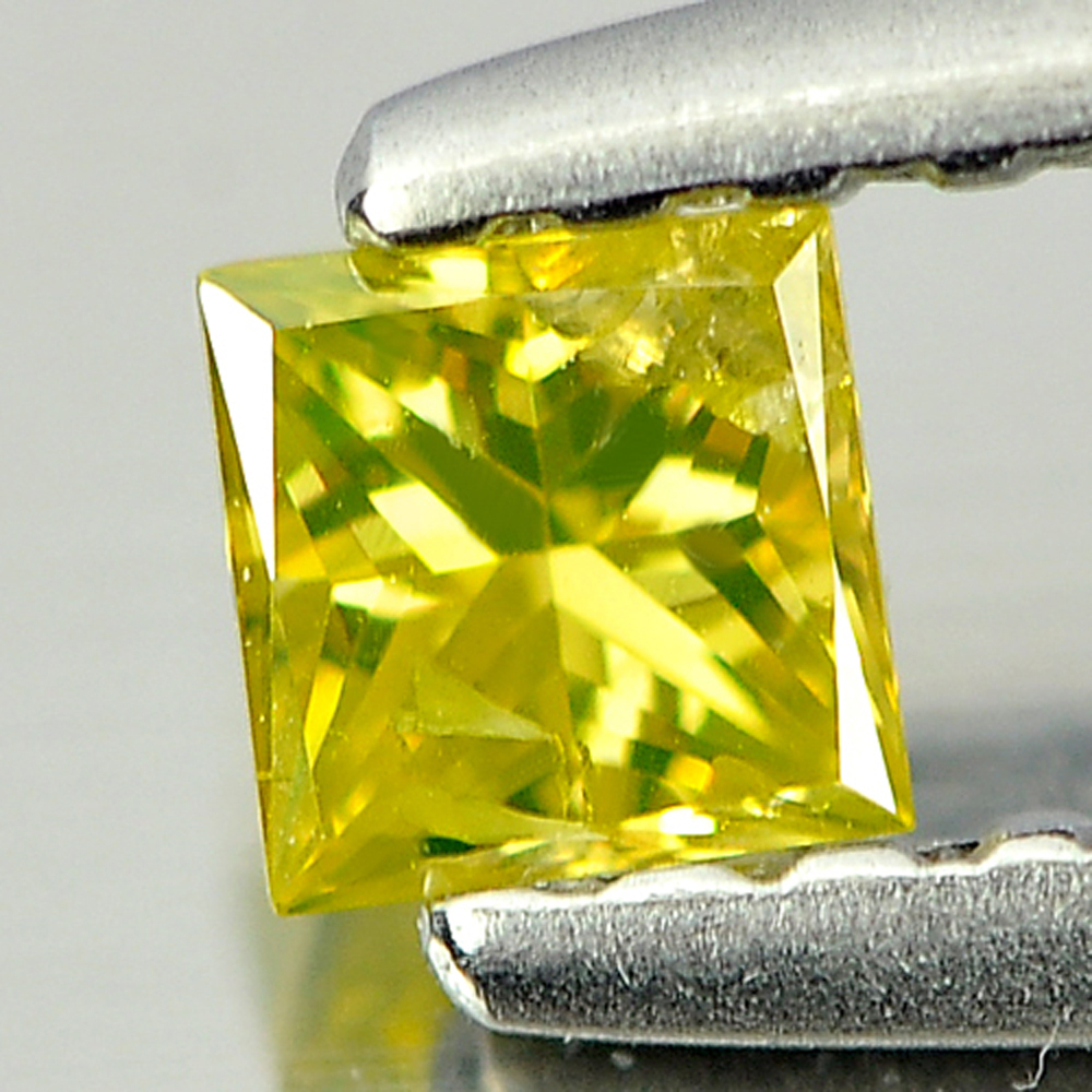 Yellow Loose Diamond 0.15 Ct. Square Princess Cut 2.9 x 2.9 Mm. Natural Belgium