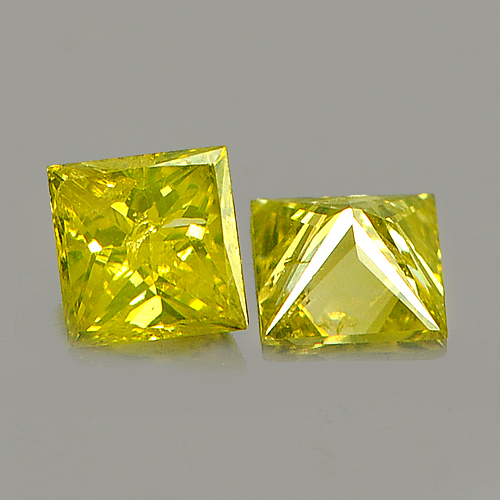 0.14 Ct. 2 Pcs. Good Color Square Princess Cut Natural Yellow Loose Diamond