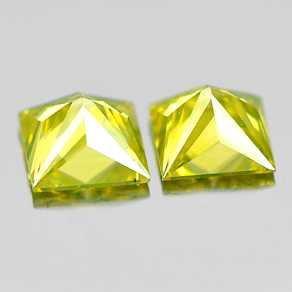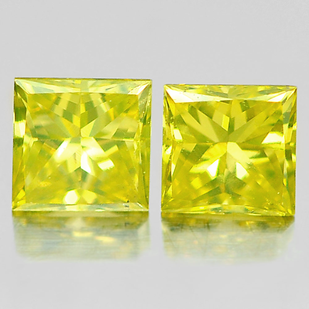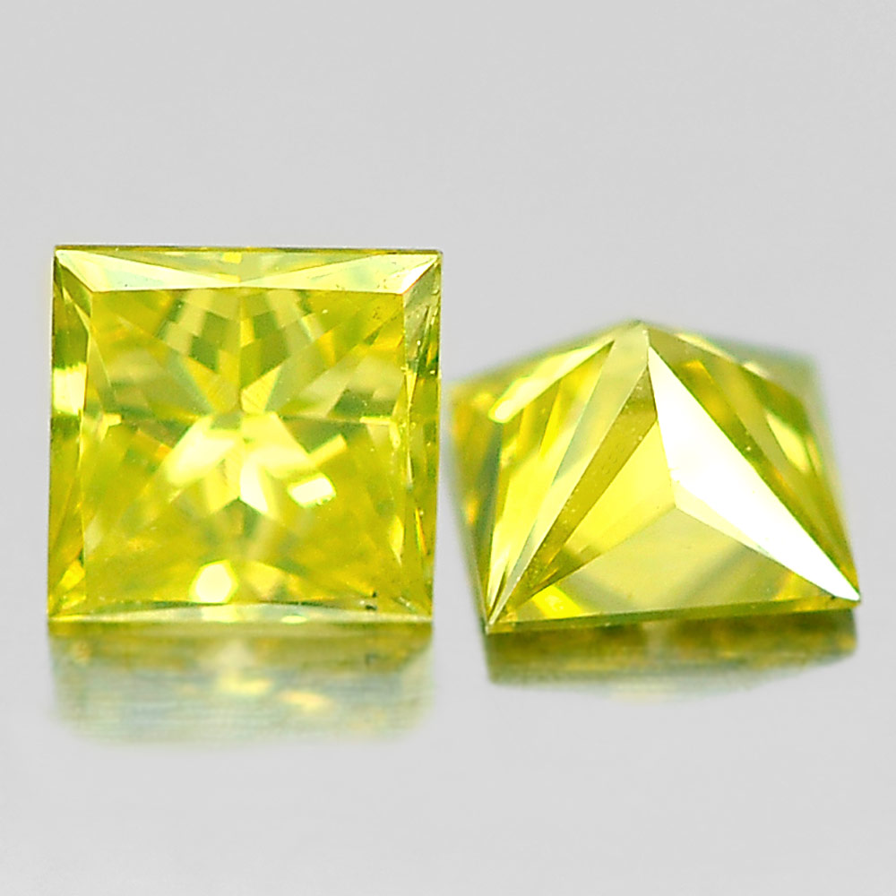 Yellow Loose Diamond0.18 Ct. 2 Pcs. Square Princess Cut 2.4 Mm. Natural